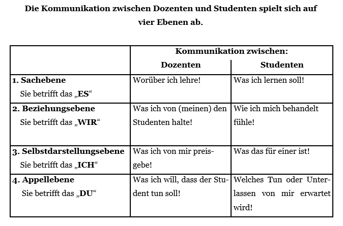 Wie kompliziert diese „4 Schnabel–4 Ohr-Lehr-Lern-Beziehung“ ist, möge folgender kleine Exkurs über Kommunikation verdeutlichen.